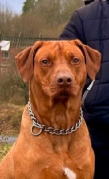 Hello! I'm Scooby a 3-year-old, neutered male Rhodesian Ridgeback searching for a firm, dedicated owner. I know my basic commands like sit and stay, and I’m a fantastic house protector who will certainly let you know about visitors. My Strengths & Needs * Energy: I've got high energy, including my fun, boisterous zoomies! I need an active life. * People: I'm great with the small kids I know, but I play rough. I take time to warm up to new people—be patient, and I'll be loyal. * Training Focus: My biggest hurdle is reacting strongly (pulling/barking) to other dogs on walks. I need someone committed to consistent socialization work. * Quirks: I love my bath time but hate the rain! Be warned, I am very motivated by food and will always ask for more. I also really don't like having my ears touched or going to the vet. I know I'd do best in a home ready to invest time in training and building my confidence around the world outside. I'm ready to be your devoted companion!